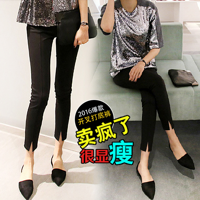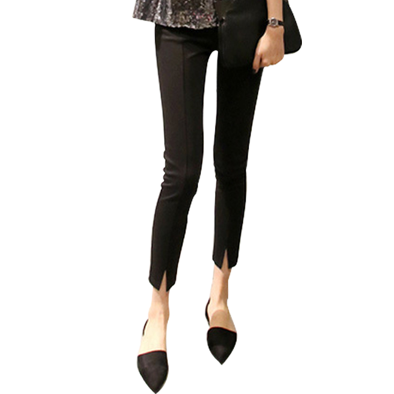 / 春秋季韓版黑色鉛筆褲顯瘦小腳褲開叉高腰外穿打底褲女九分褲