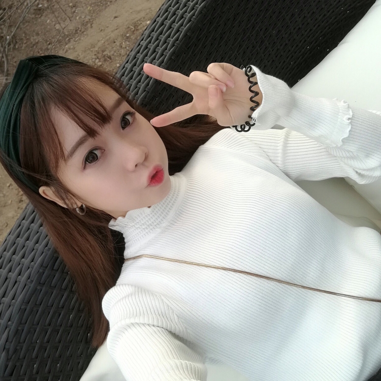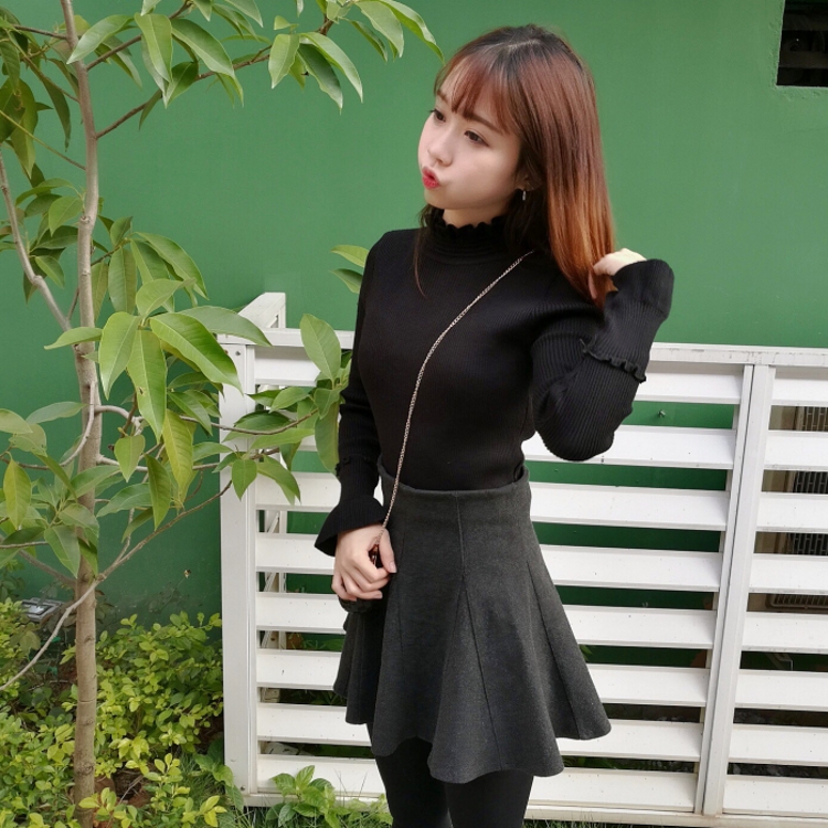 / 韓國秋冬款百搭木耳邊半高領長袖針織衫修身套頭螺紋打底衫女