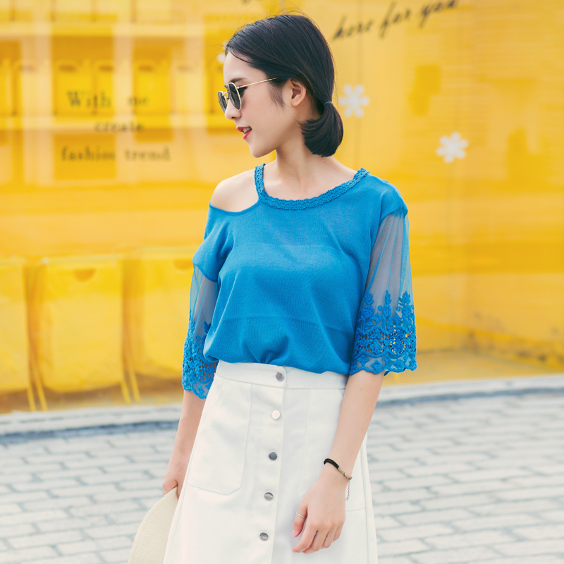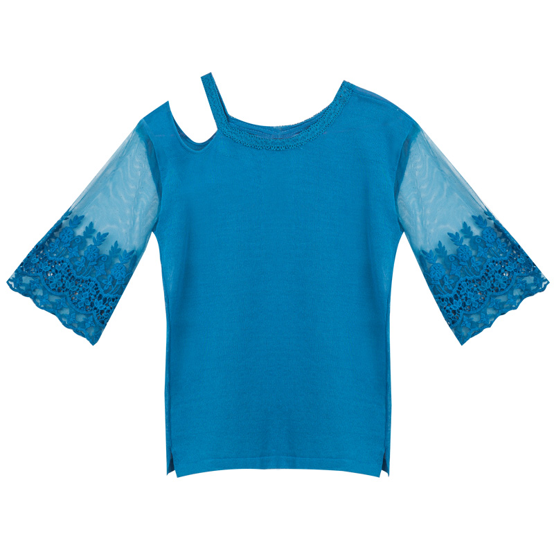 單邊鏤空露肩的設計減弱身材厚重感,散發淡淡女性魅力