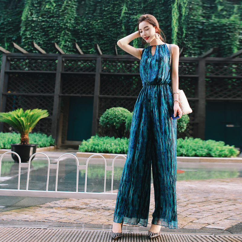 / s秀名媛2018新款網紅雪紡顯高腰休閑連體褲垂感闊腿褲女夏長褲
