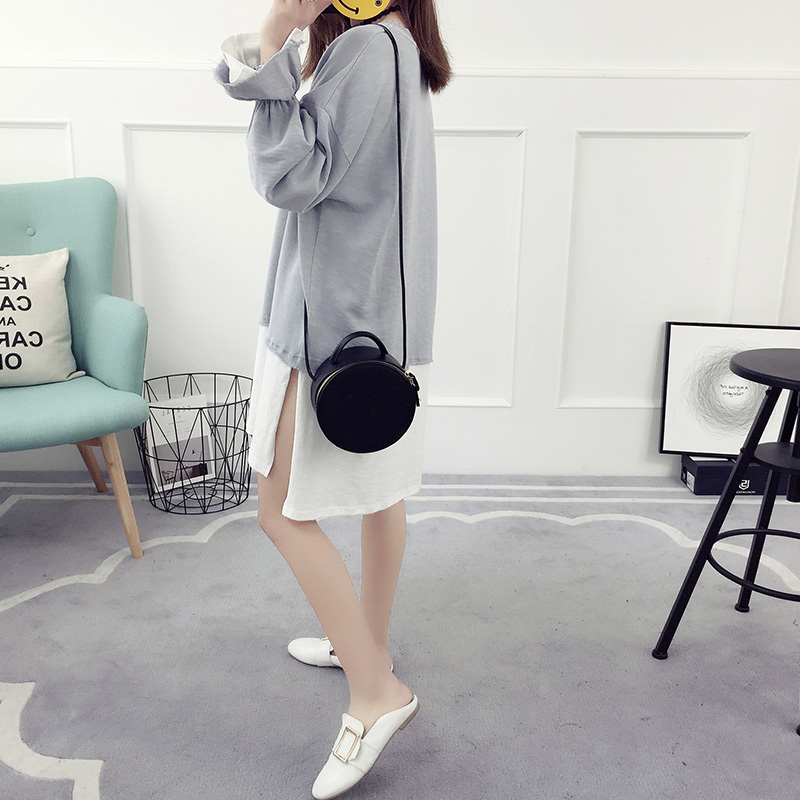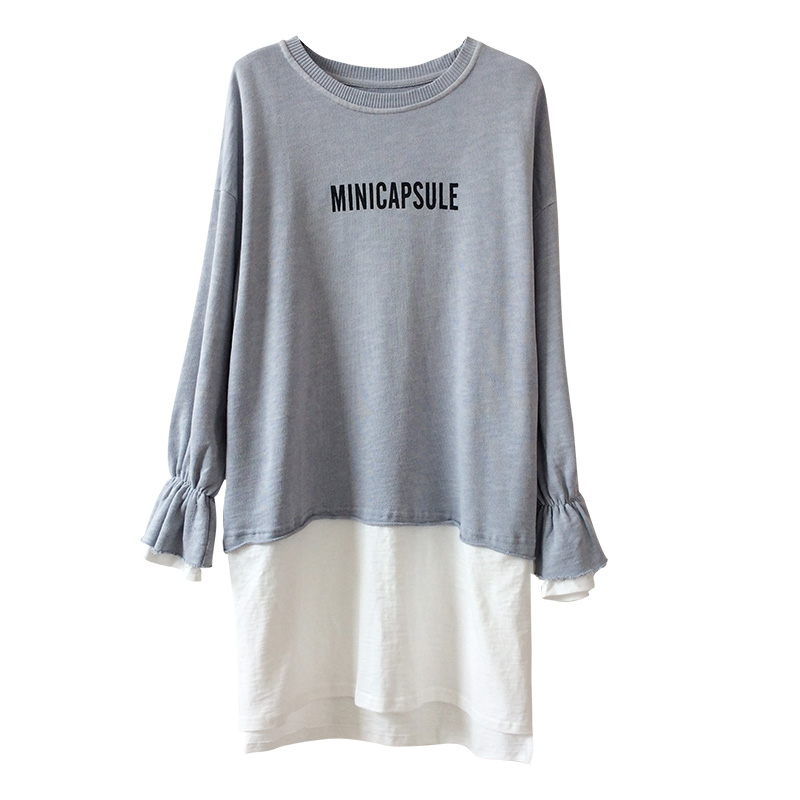 / 喇叭袖假兩件連衣裙女春秋新款韓版寬松顯瘦百搭春款打底衫夏