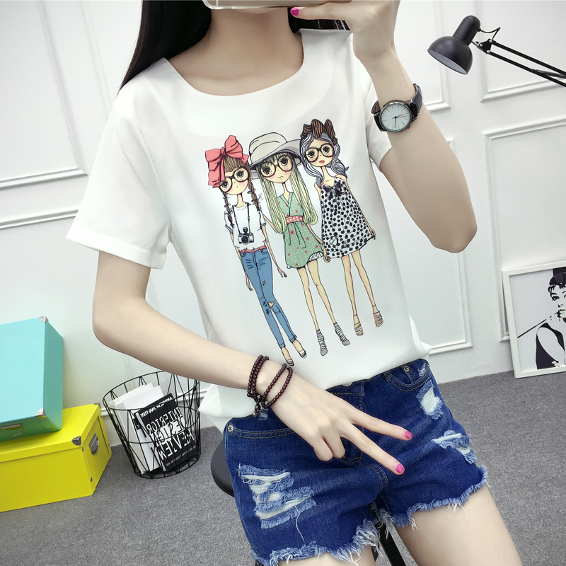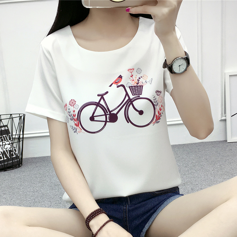 夏季新款雪紡印花短袖T恤雪紡衫女韓版寬松大碼百搭學生上衣
