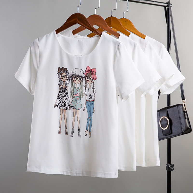 / 夏季新款雪紡印花短袖T恤雪紡衫女韓版寬松大碼百搭學生上衣