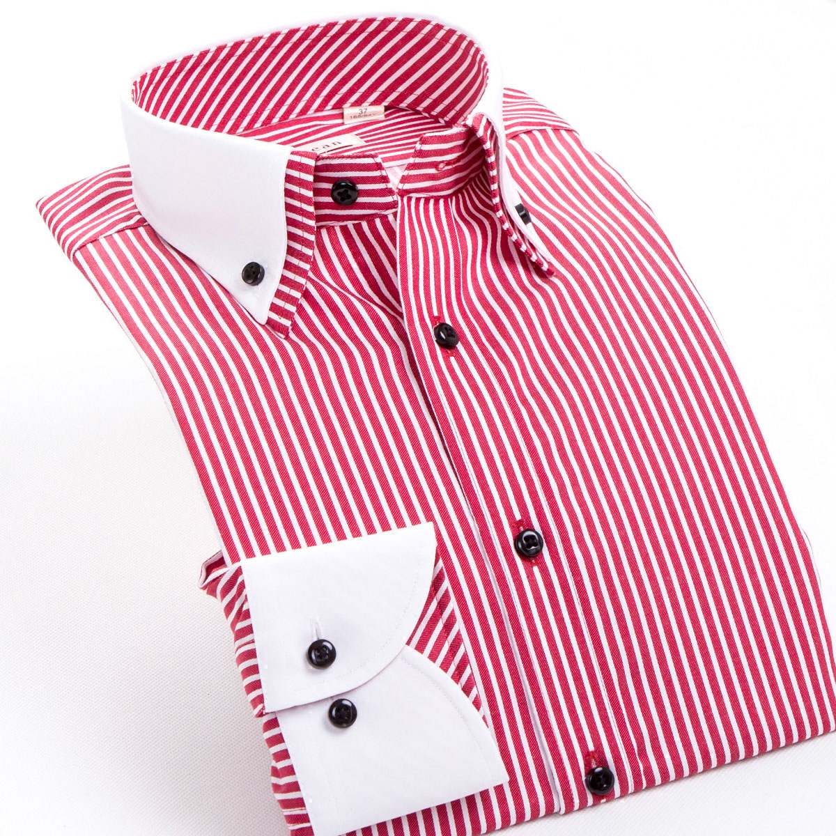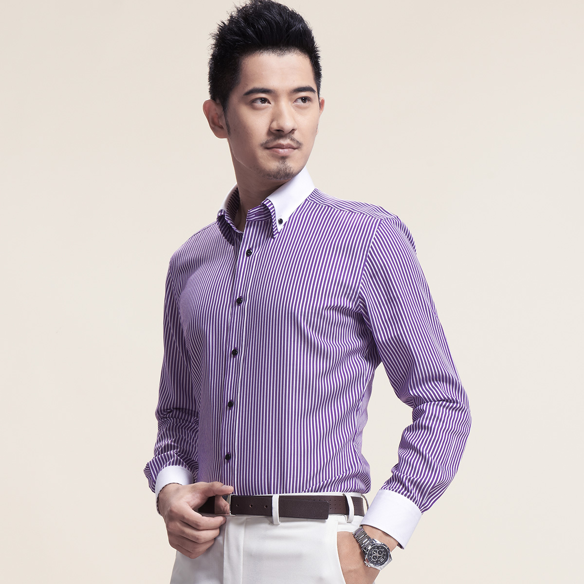 / 深海商務正裝襯衫男式長袖韓版修身型紳士藍色時尚條紋襯衣男裝秋