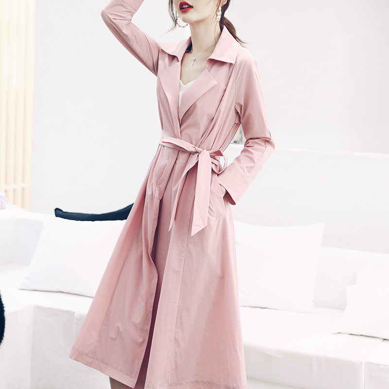 S秀2018秋裝新款名媛氣質時尚西裝領長袖風衣女寬松中長款外套