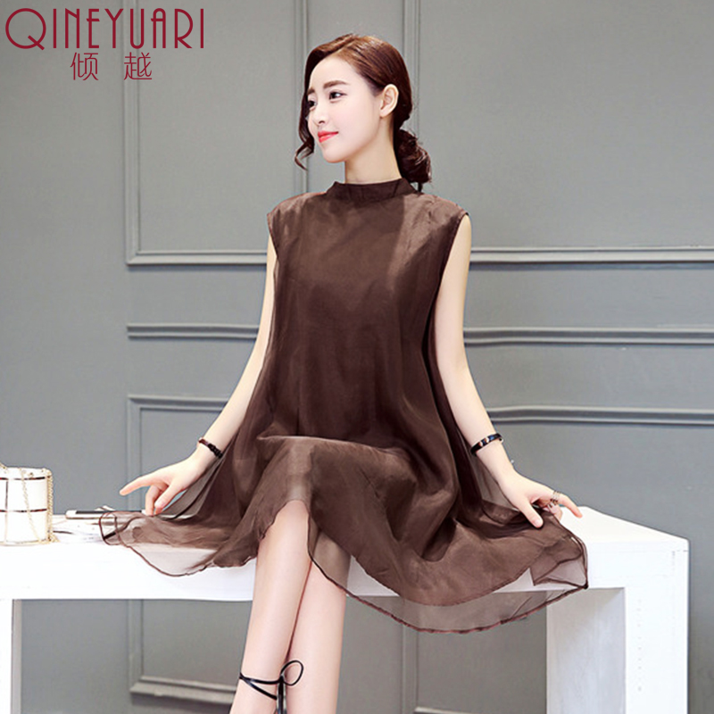 / 2017夏季新款氣質女裝OL時尚顯瘦無袖雪紡連衣裙女中長款A字裙子