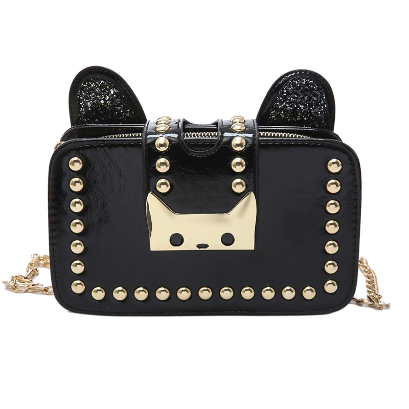 / 包包女新款潮可愛貓耳小方包鏈條包鉚釘單肩女包韓版斜挎小包
