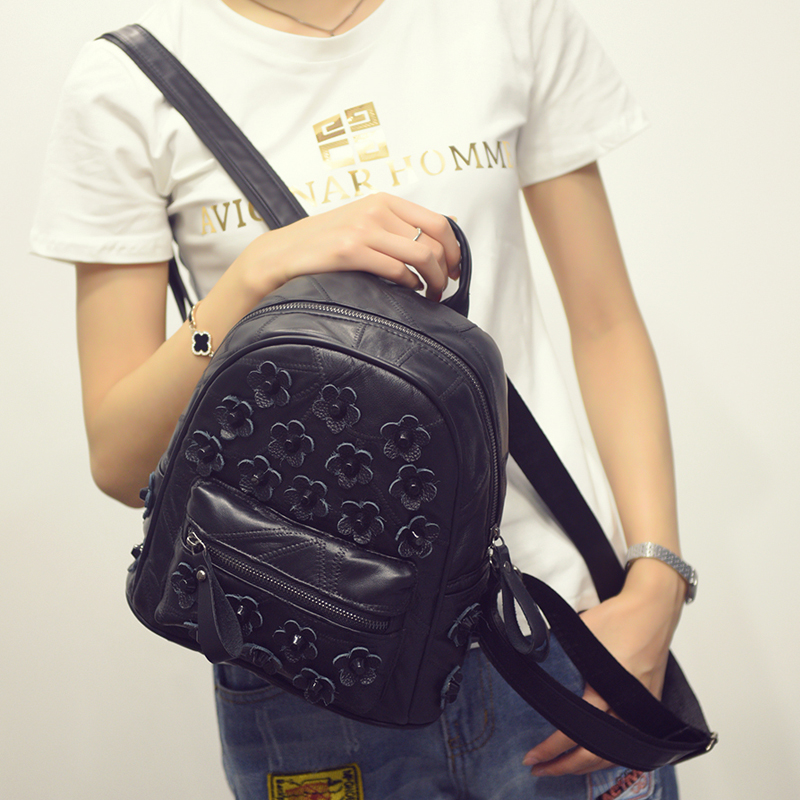 新款雙肩包女韓版潮pu時尚學院風休閑花朵小背包時尚旅行包包