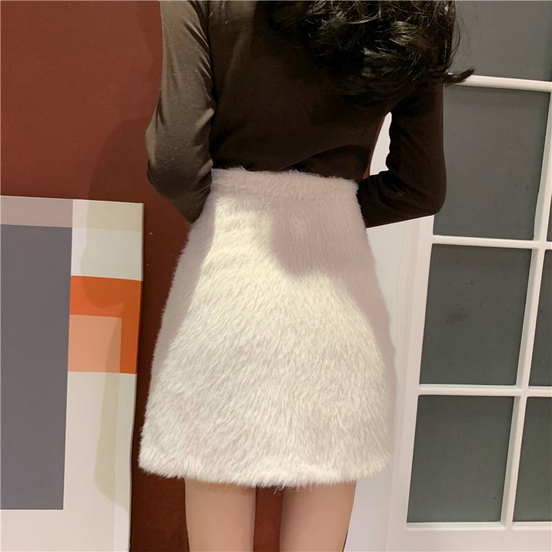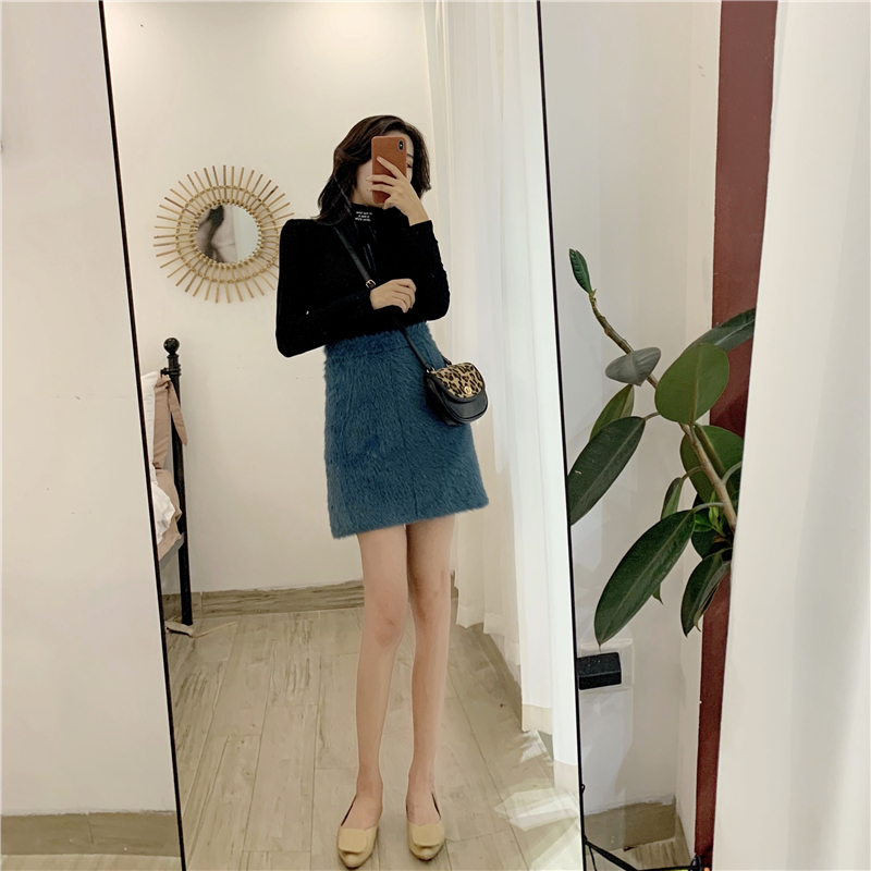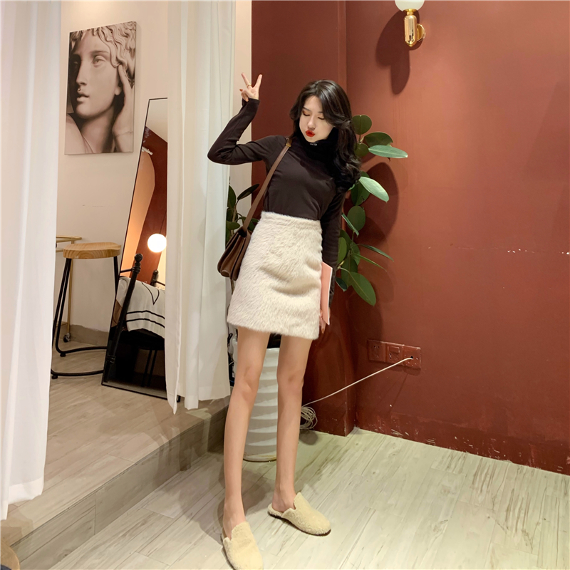 / 新款高領修身顯瘦加絨字母打底T恤時尚套裝A字半身裙chic兩件套女