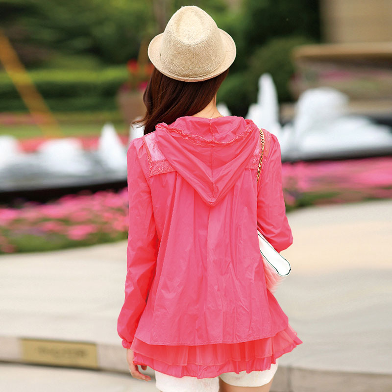 戶外防曬衣女大碼收腰寬松短外套夏季蕾絲防紫外線長袖薄款皮膚衣