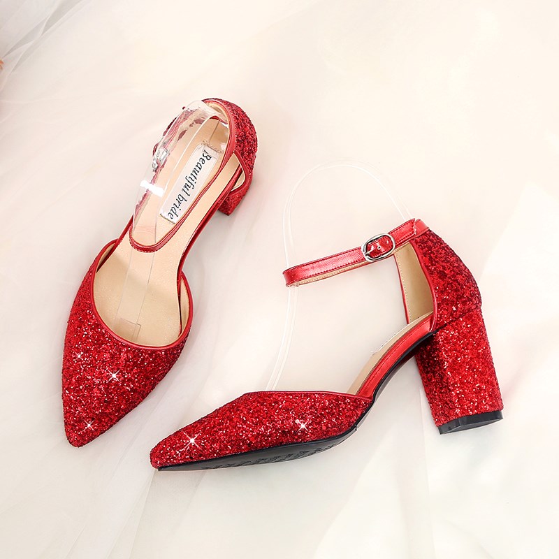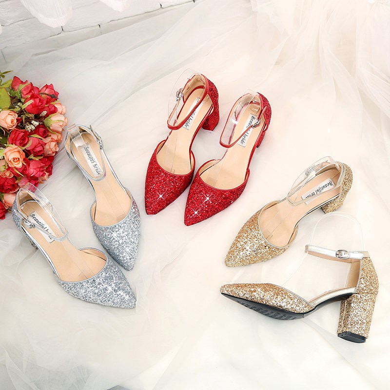 婚鞋女2018新款中空高跟鞋結婚鞋子新娘鞋紅色粗跟敬酒韓版婚禮鞋