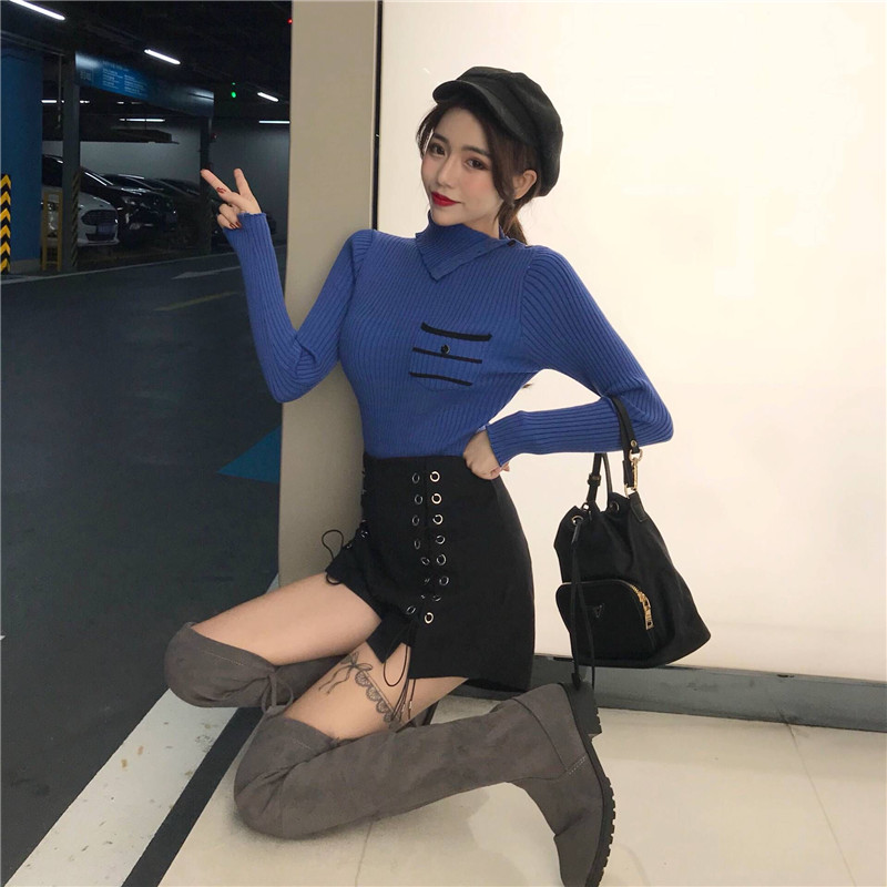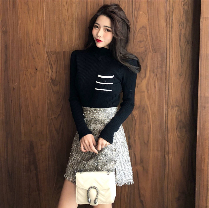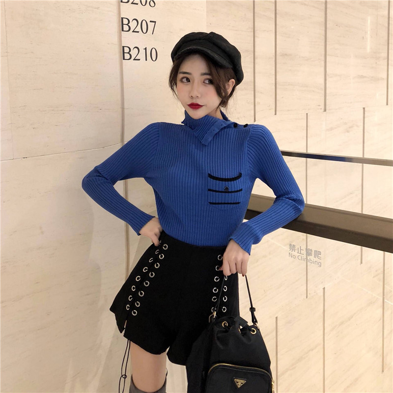 韓版高領扣子長袖針織衫