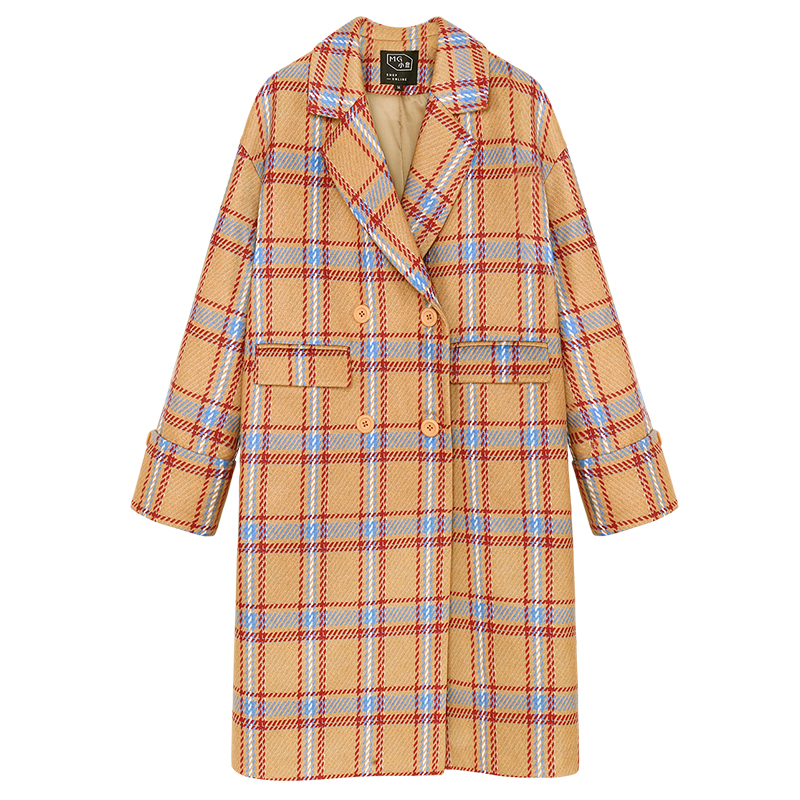 MG小象2018流行大衣女中長款寬松長袖秋冬新款學生格子毛呢外套潮