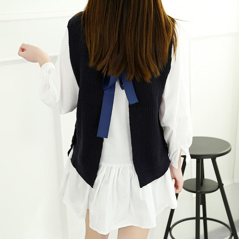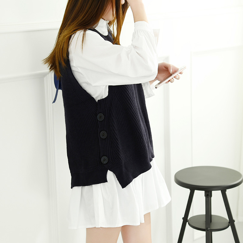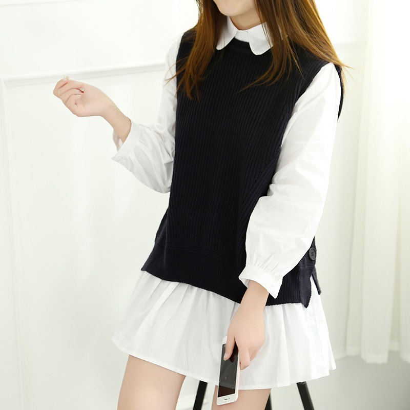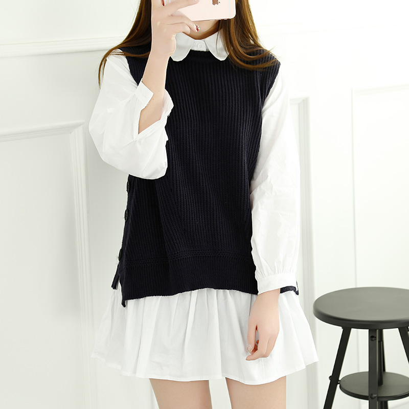 / 春裝新款女針織連衣裙女裝韓版短款寬松毛衣背心兩件套套裝潮