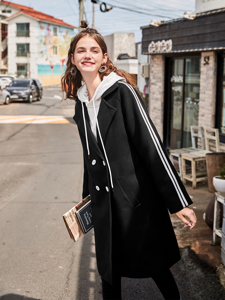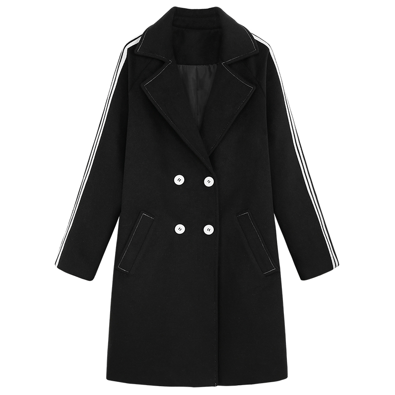 MG小象2018流行呢子大衣女冬季新款中長款寬松時尚黑色毛呢外套潮