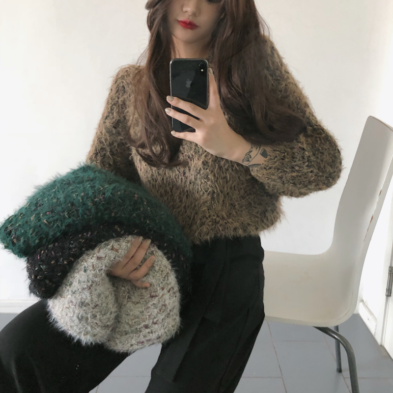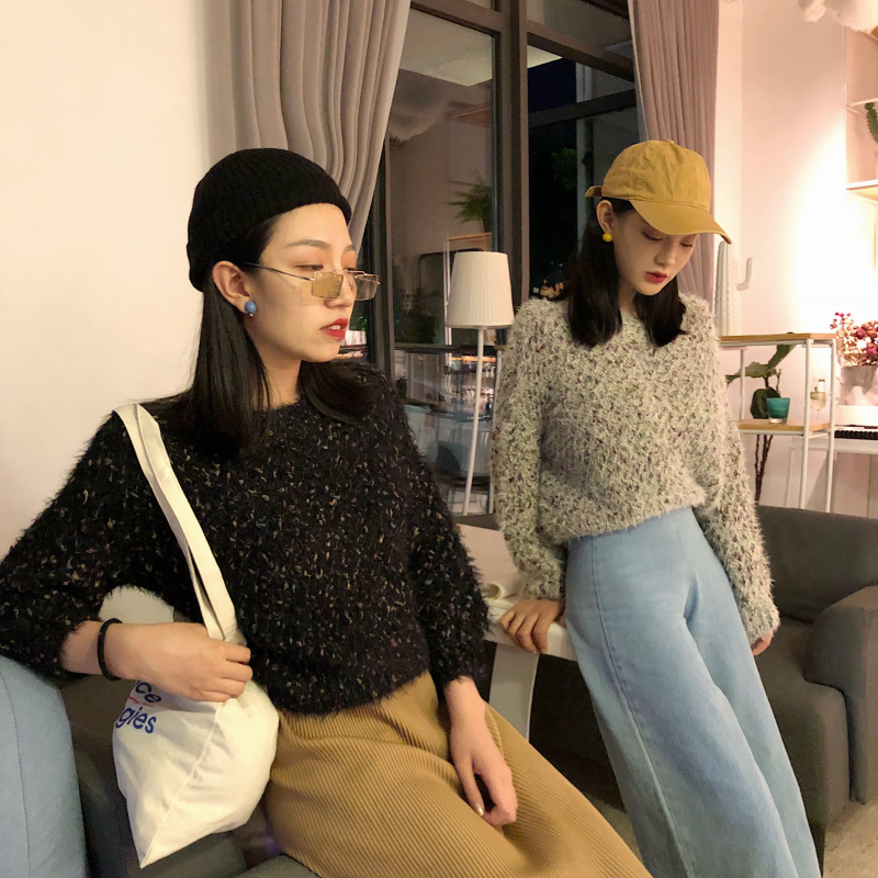 / 秋冬新款韓版復古女裝港味粗線寬松短款百搭上衣加厚彩虹點毛衣潮