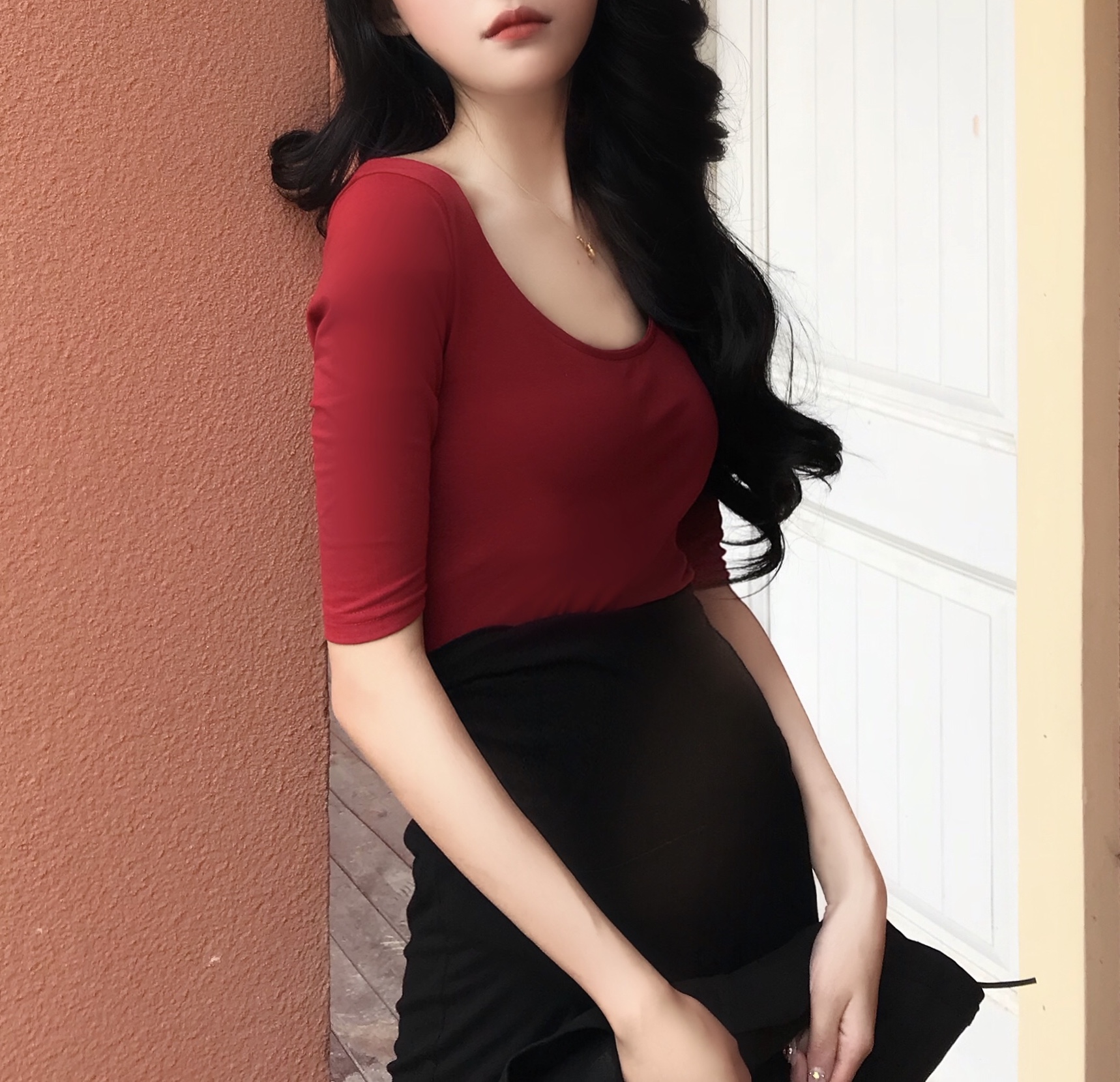 新款韓版復古chic芭蕾舞圓領純色百搭修身顯瘦小清新港味T恤上衣