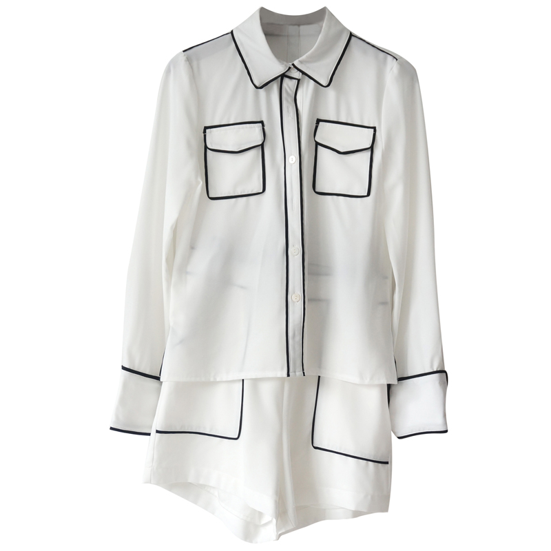名媛氣質夏季女韓版極簡風襯衫長袖上衣短褲收腰顯瘦時尚套裝秋