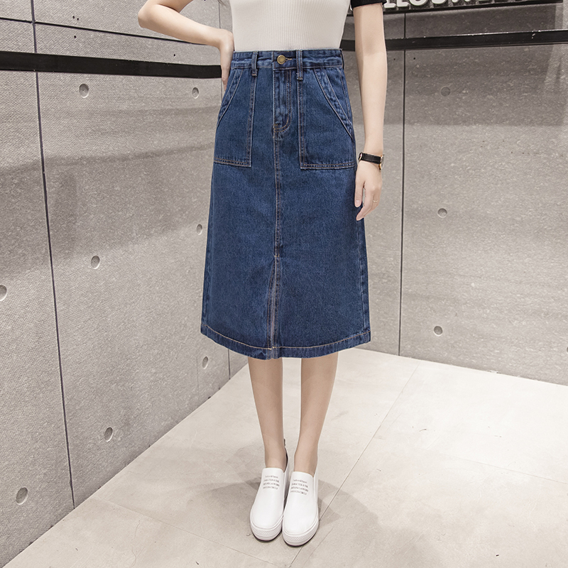/ 牛仔裙韓版高腰學院風春夏季復古修身顯瘦半身中長款長裙女學生潮