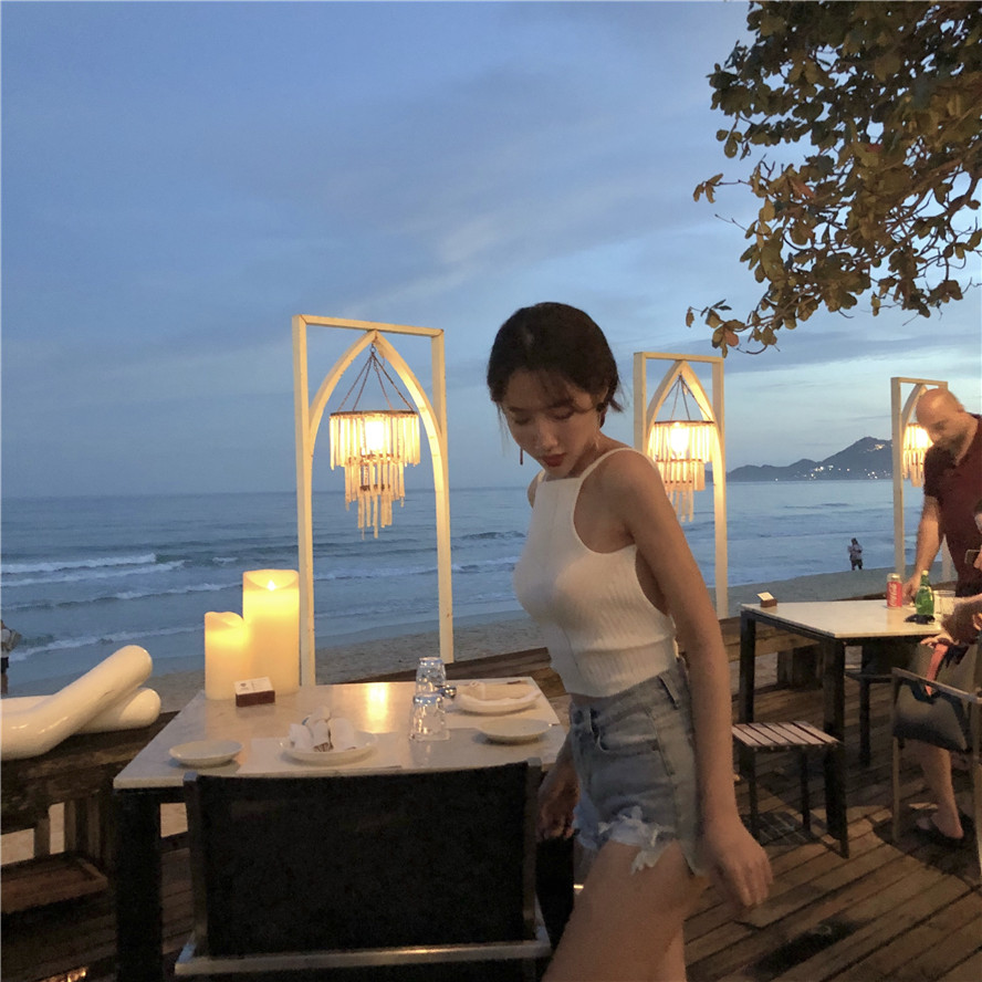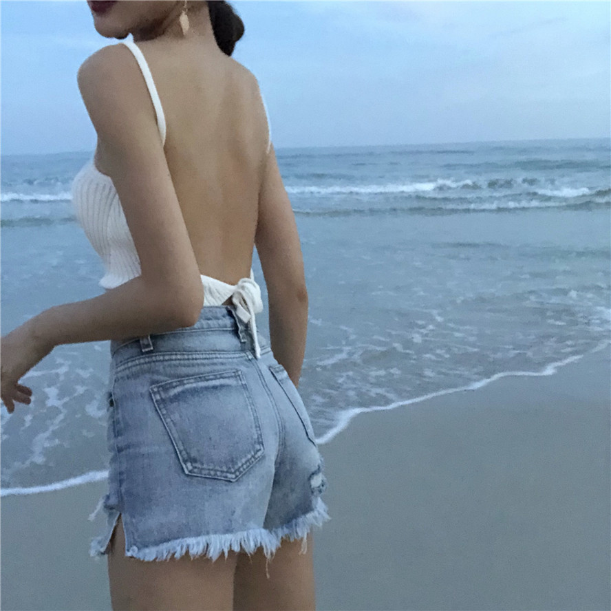 / 新款歐美chic風無袖大露背顯瘦氣質女人味針織百搭掛脖吊帶背心女