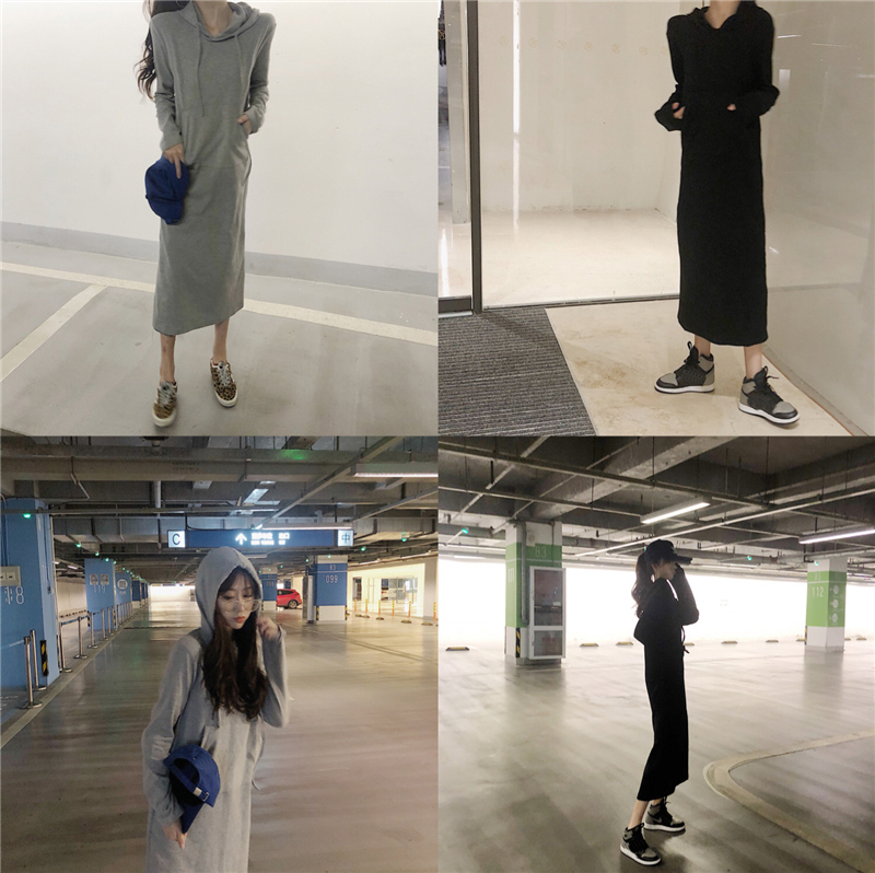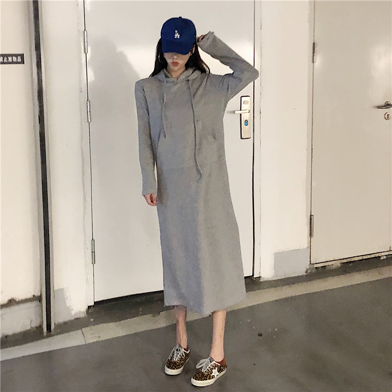 / 連衣裙秋裝2018新款女chic長款衛衣裙加厚連帽過膝bf氣質打底裙潮
