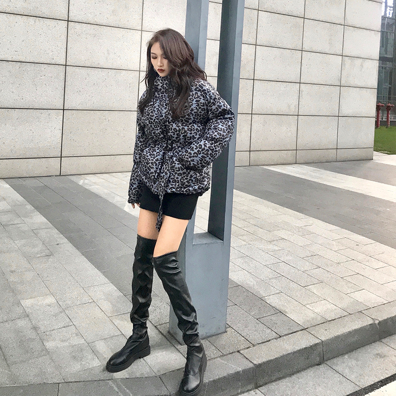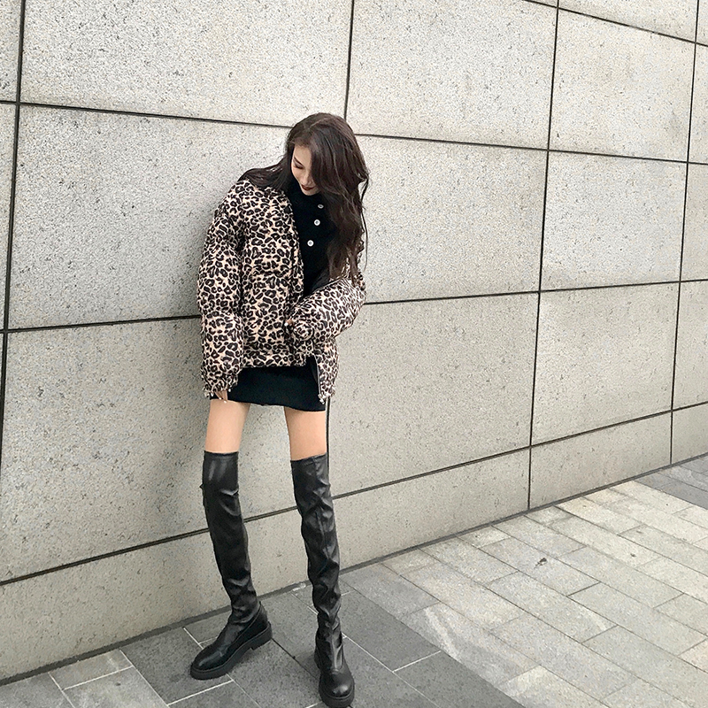 / 2018秋冬新款韓版加厚保暖大衣寬松豹紋時尚氣質外套長袖時尚棉服