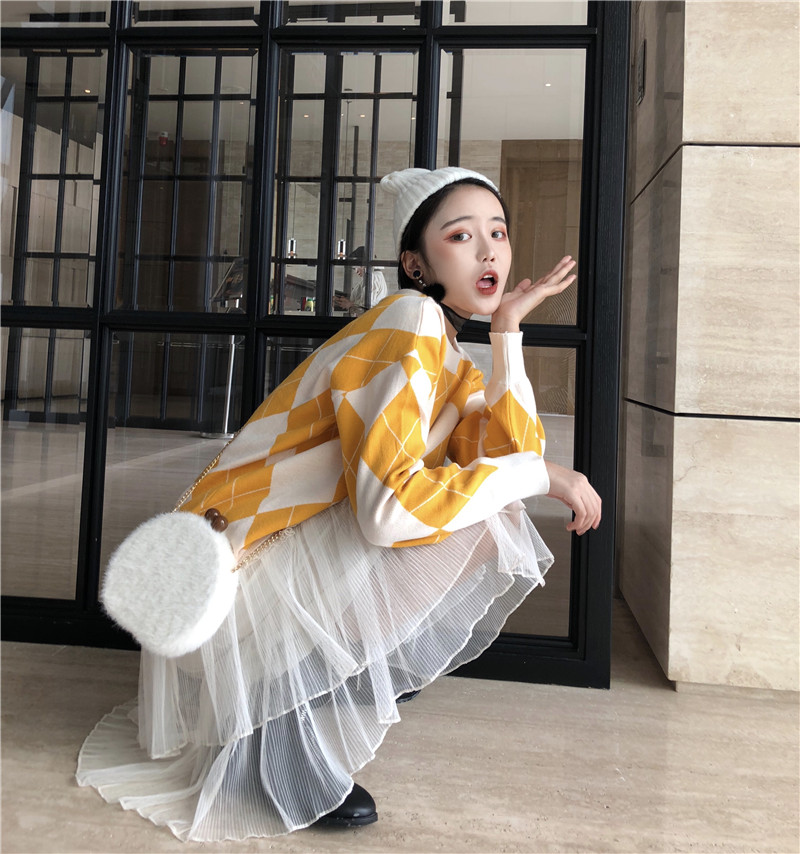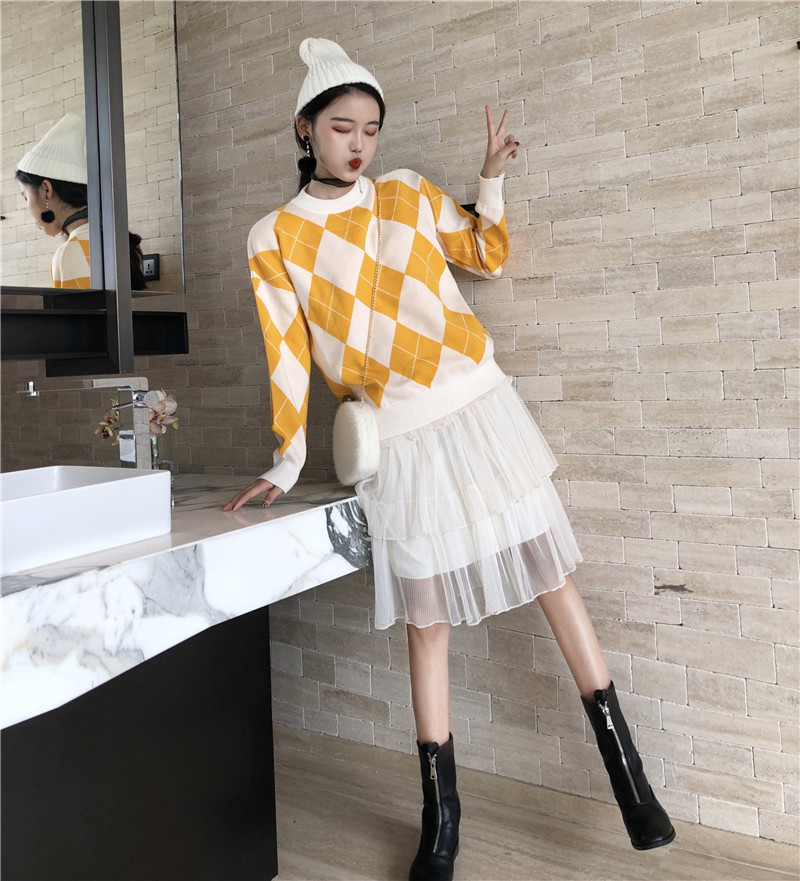/ 復古港味菱格針織上衣+百搭吊帶打底紗裙