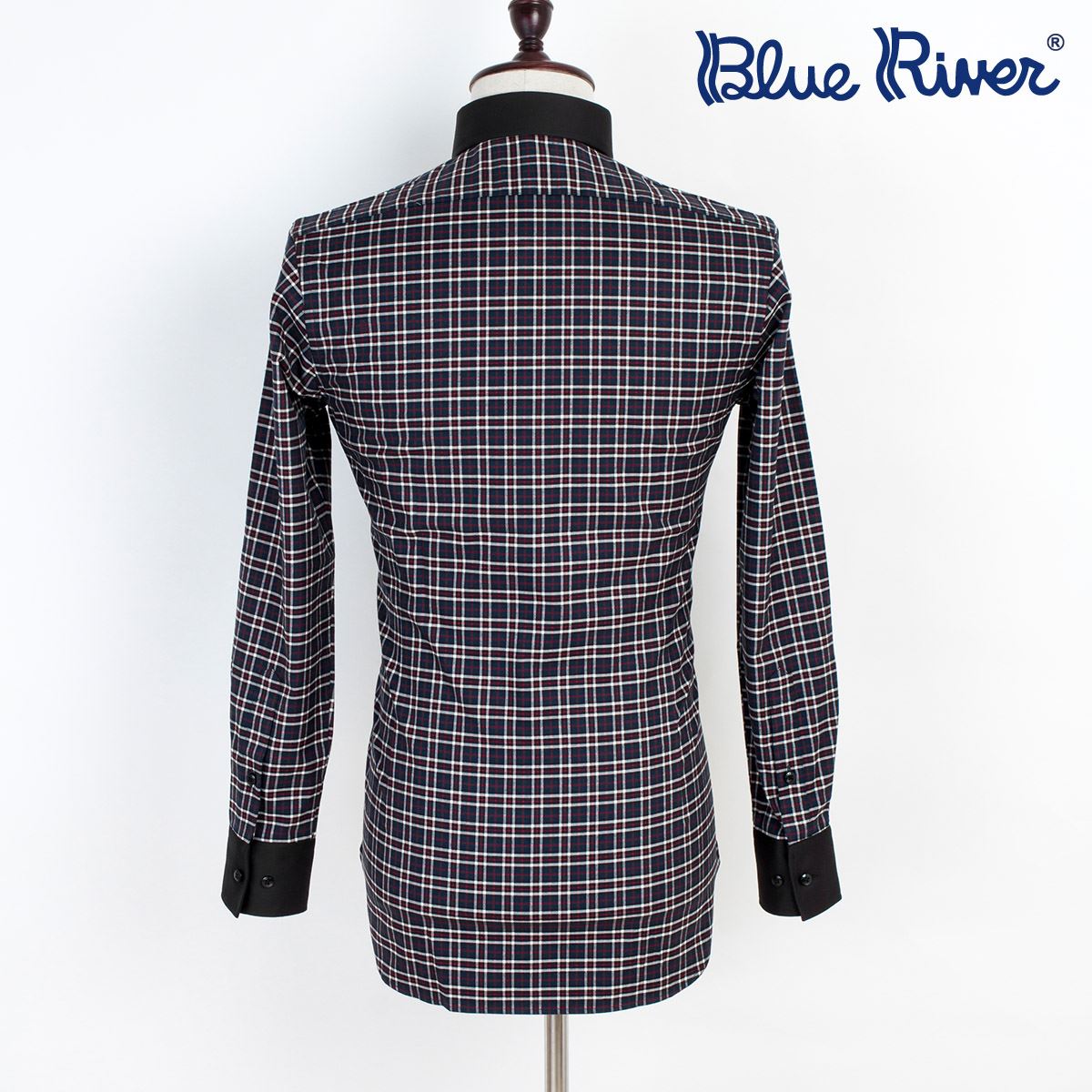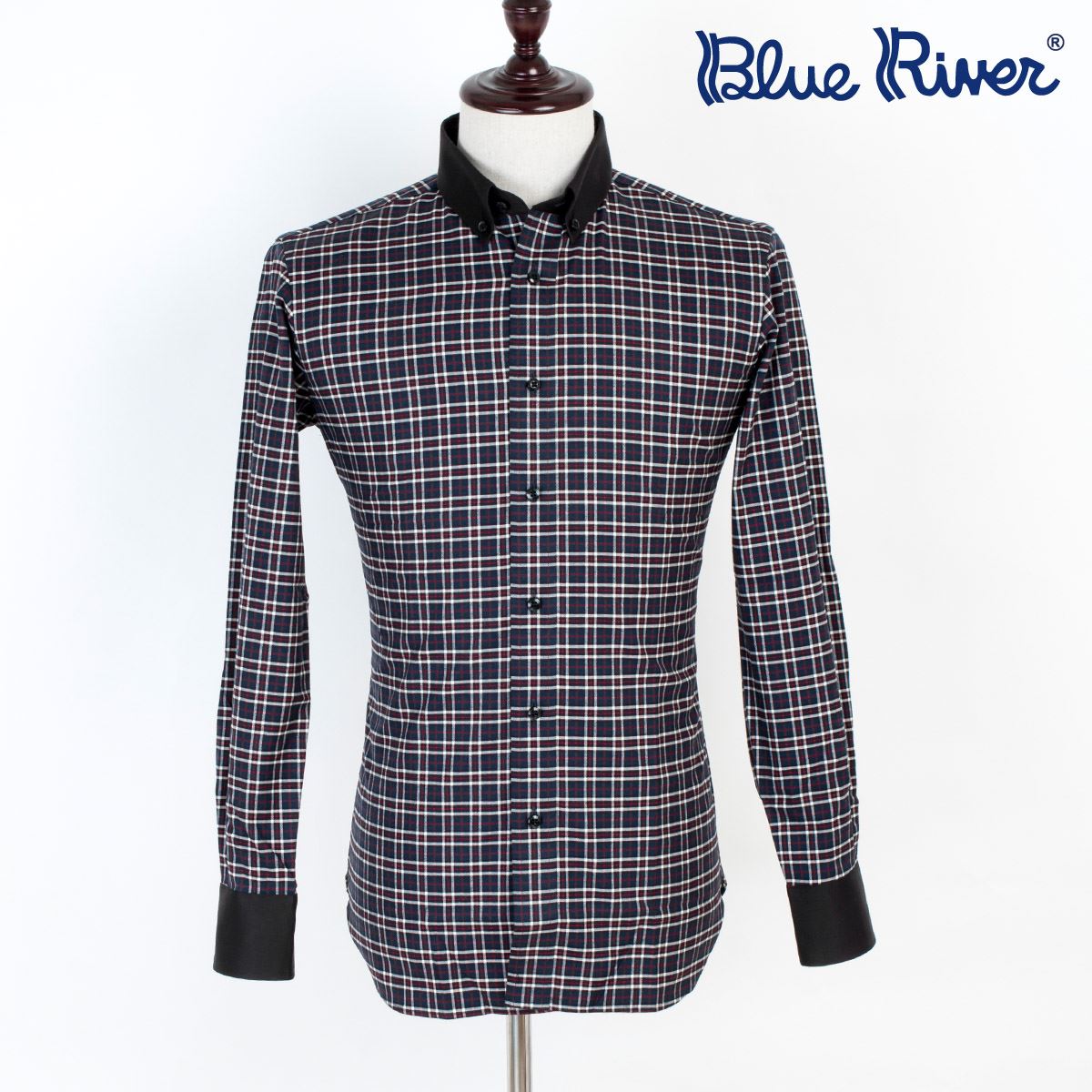 / 藍河格子襯衫男長袖商務休閑純棉修身襯衣男秋季新款潮流時尚裝
