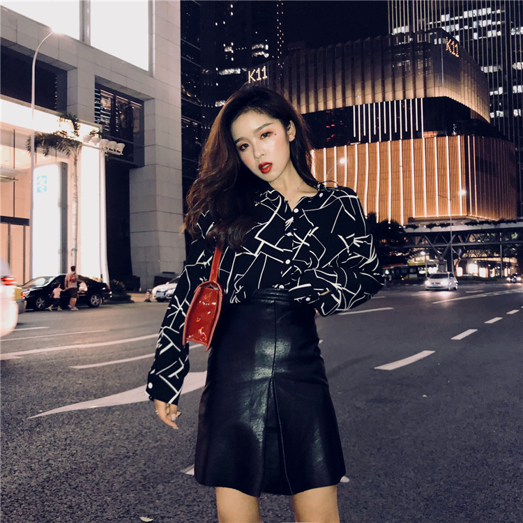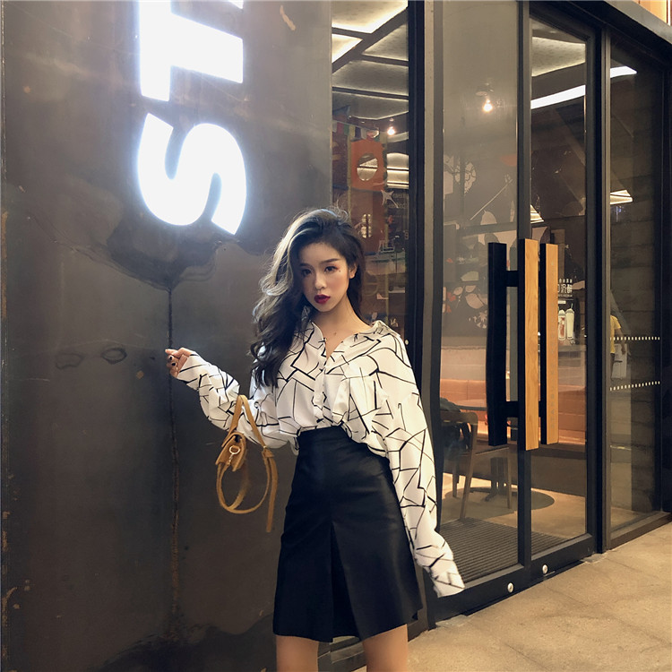 / 復古溫柔新款韓版秋季上衣氣質寬松顯瘦抽象印花簡約百搭薄款襯衫