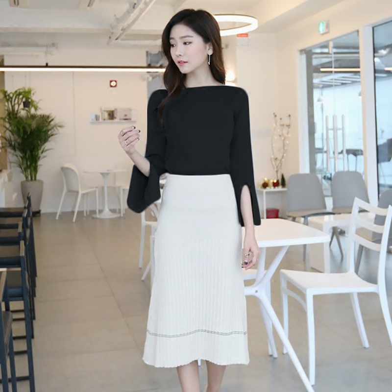 / 春季新款針織套裝女修身時尚針織衫包臀裙連衣裙兩件套打底裙