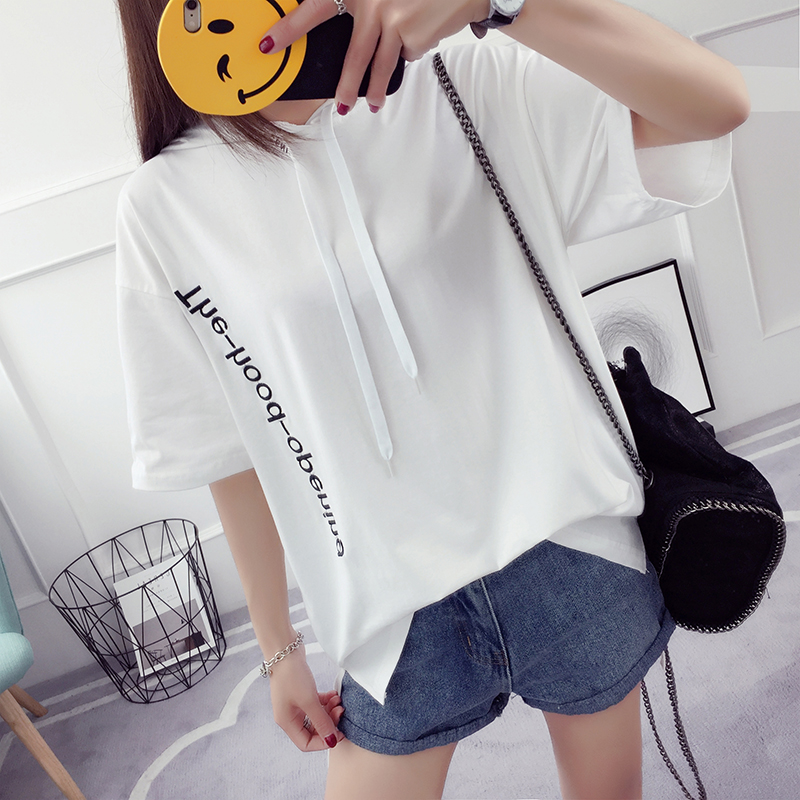 / 夏季短袖衛衣女韓版潮學生寬松薄款新款連帽套頭中長款兜帽衫