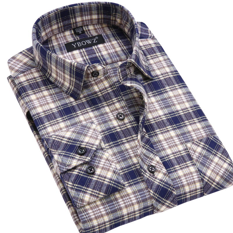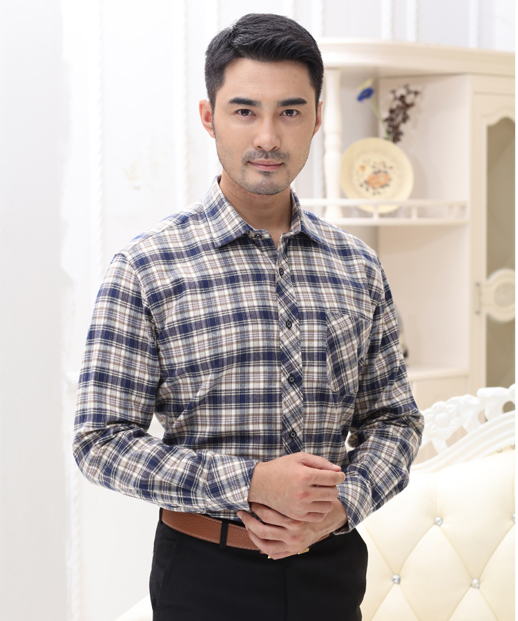 / 春秋寬松爸爸裝長袖襯衫男士純棉休閑免燙中年磨毛格子全棉襯衣男