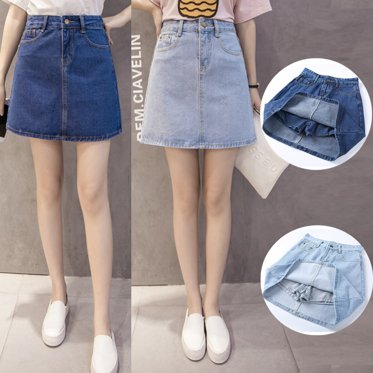 / 牛仔裙半身裙女韓版高腰A字裙包臀短裙防走光褲裙半裙大碼女裙夏
