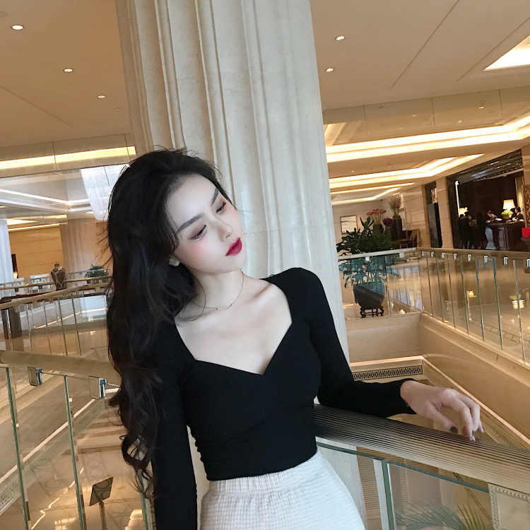 / chic早秋上衣女2018新款韓版百搭立體剪裁顯瘦打底衫長袖螺紋T恤