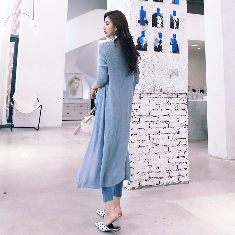 時尚套裝女牛仔小腳褲2018秋季新款中長款針織長袖開衫吊帶三件套
