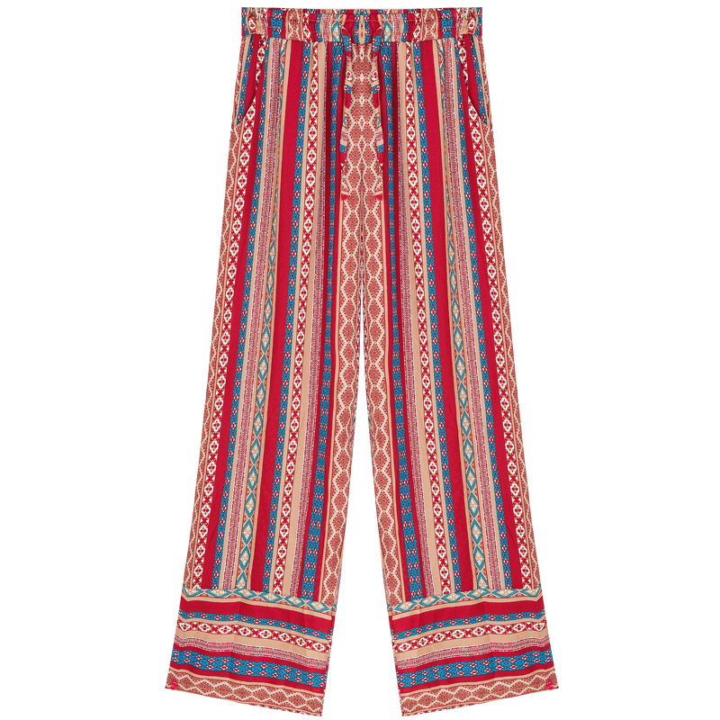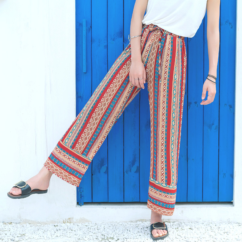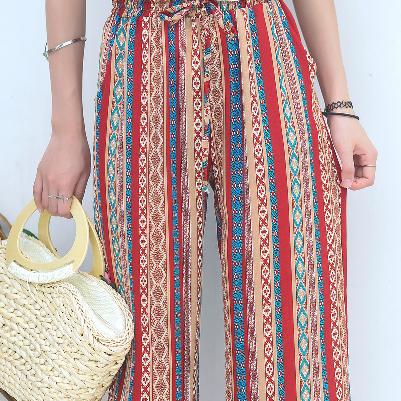 / 夏裝新款女裝休閑寬松直筒高腰民族風雪紡闊腿褲九分百搭褲子