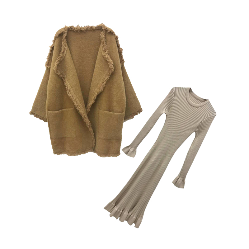 白色外套|黑色針織裙|杏色針織裙|駝色外套