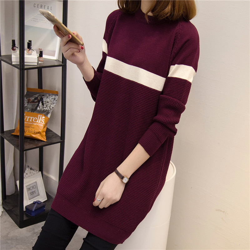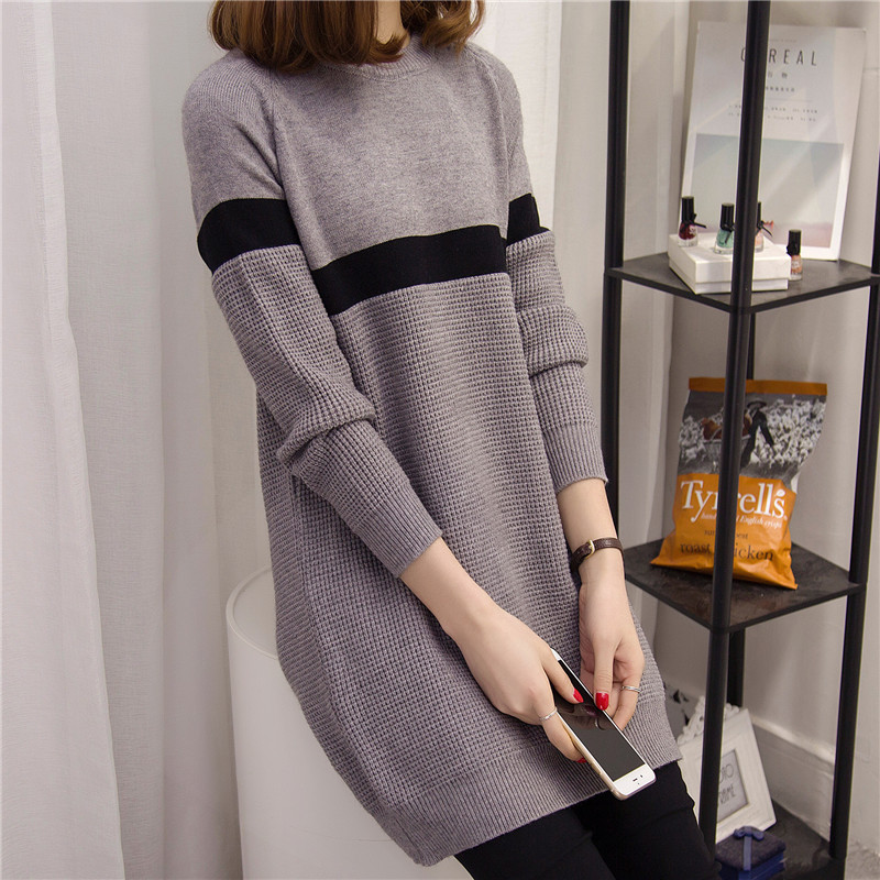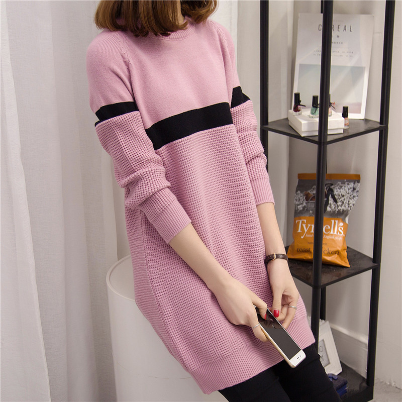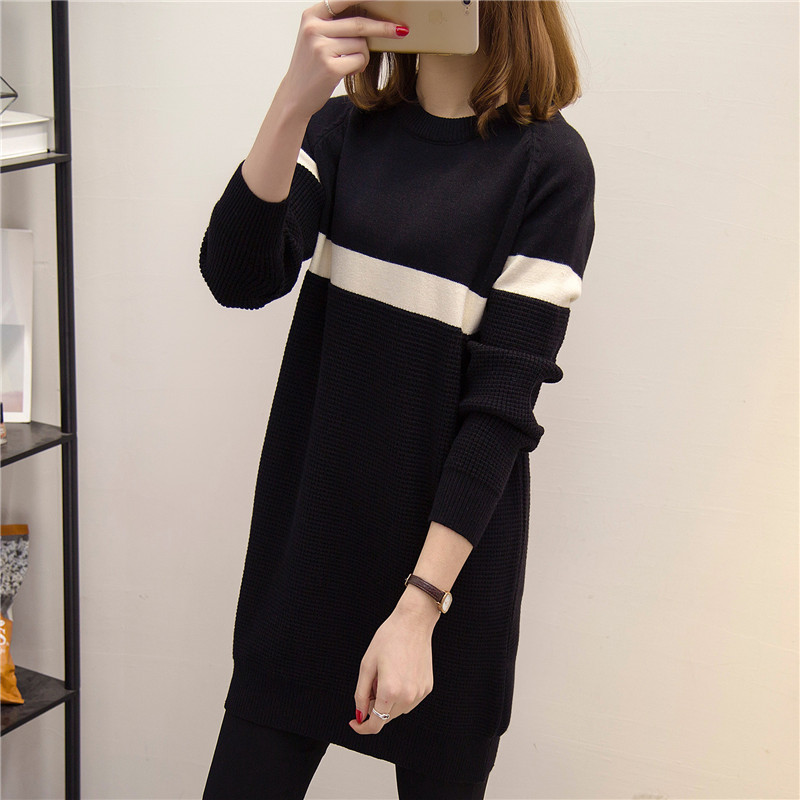 / 韓版毛衣裙打底衫長袖條紋針織衫女套頭上衣秋冬季女裝新款潮