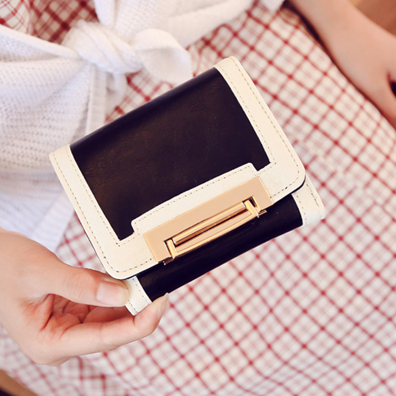 / 日韓女士撞色短款三折錢包 新款簡約時尚鎖扣百搭手拿零錢包