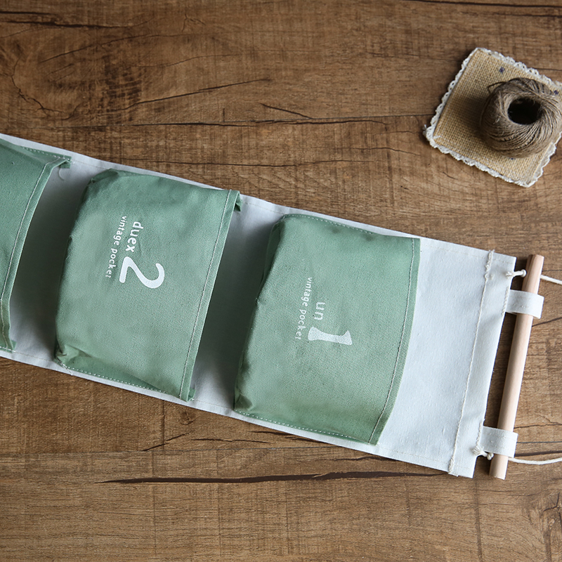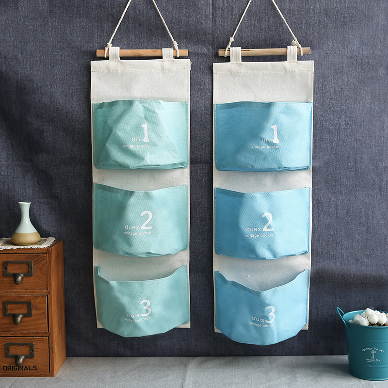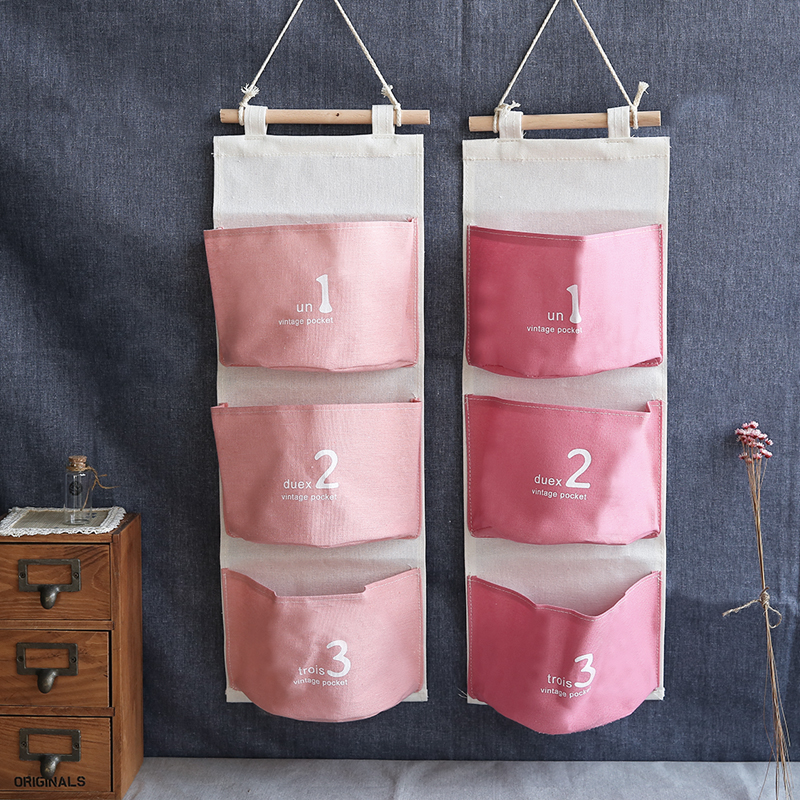 ZAKKA三兜連體掛袋棉麻布藝墻壁門后裝飾雜物收納袋