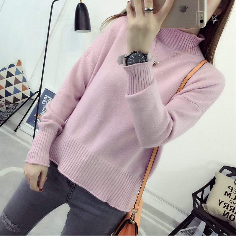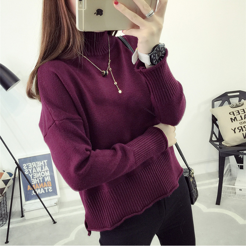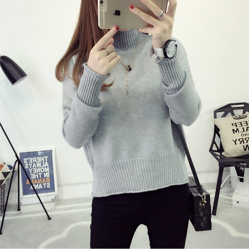 套頭毛衣女秋冬韓版短款針織衫純色上衣打底衫女裝秋裝新款潮