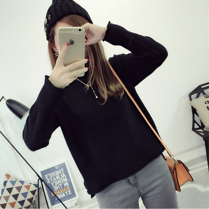 / 套頭毛衣女秋冬韓版短款針織衫純色上衣打底衫女裝秋裝新款潮
