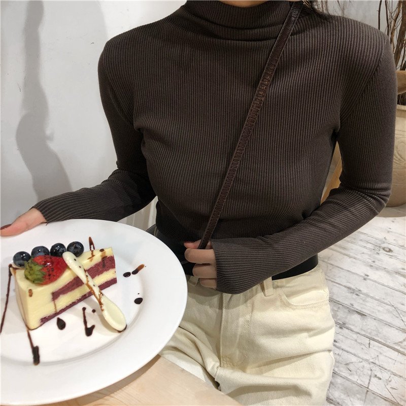 / 秋冬新款韓版chic時尚羅紋坑條磨毛顯瘦立領緊身內搭T恤打底上衣