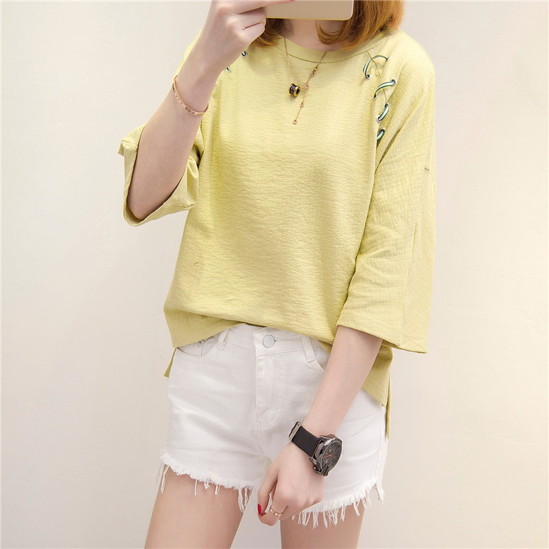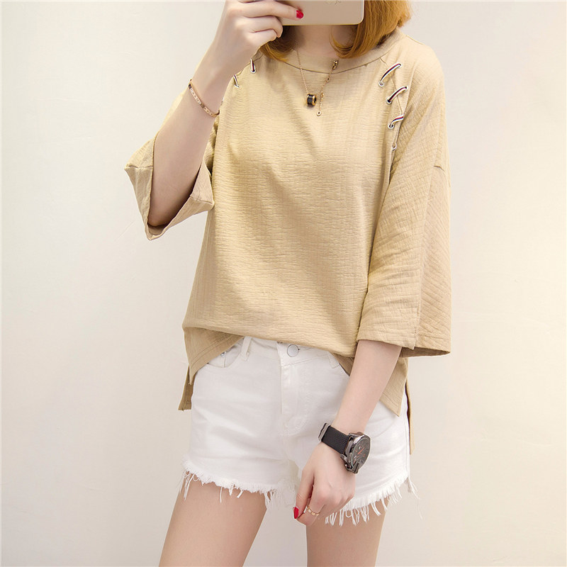 / 白色t恤女中長袖寬松短袖上衣女夏新款韓版打底體恤小衫百搭