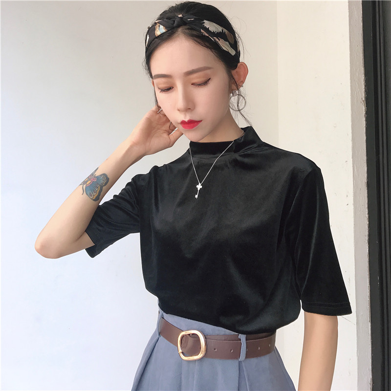 新款港味復古女純色百搭修身顯瘦上衣時尚學生休閑中長款裙送腰帶