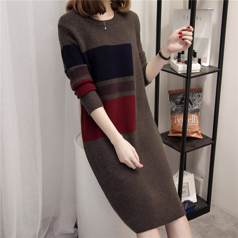 新款韓版潮冬季女裝上衣打底衫針織衫長袖套頭中長款毛衣秋冬
