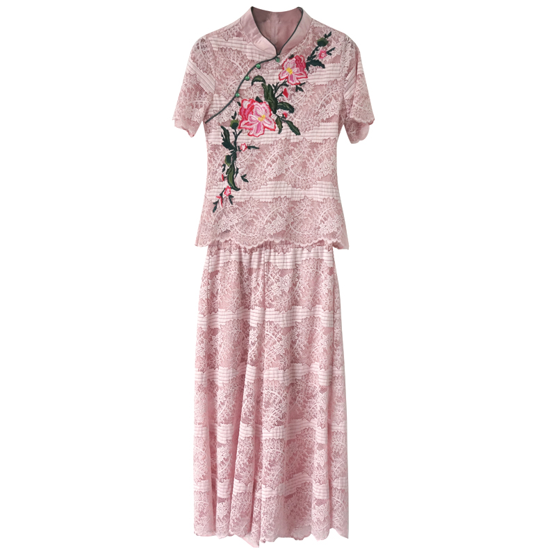 S秀旗袍闊腿褲套裝2018新款夏季蕾絲改良版日常少女兩件套潮