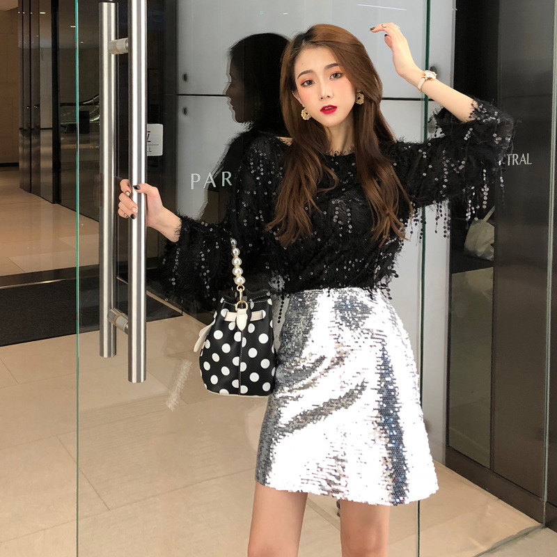 白上衣|黑上衣|亮片裙