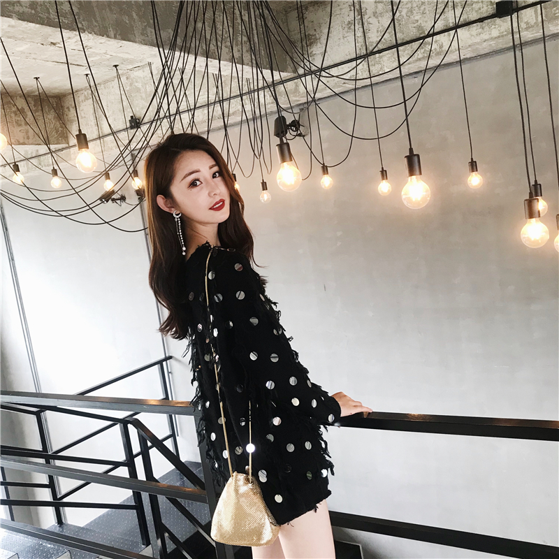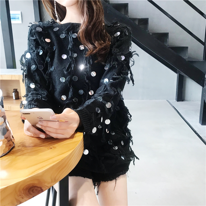 毛衣外套女韓版2018新款時尚閃閃流蘇百搭寬松套頭針織衫長袖上衣
