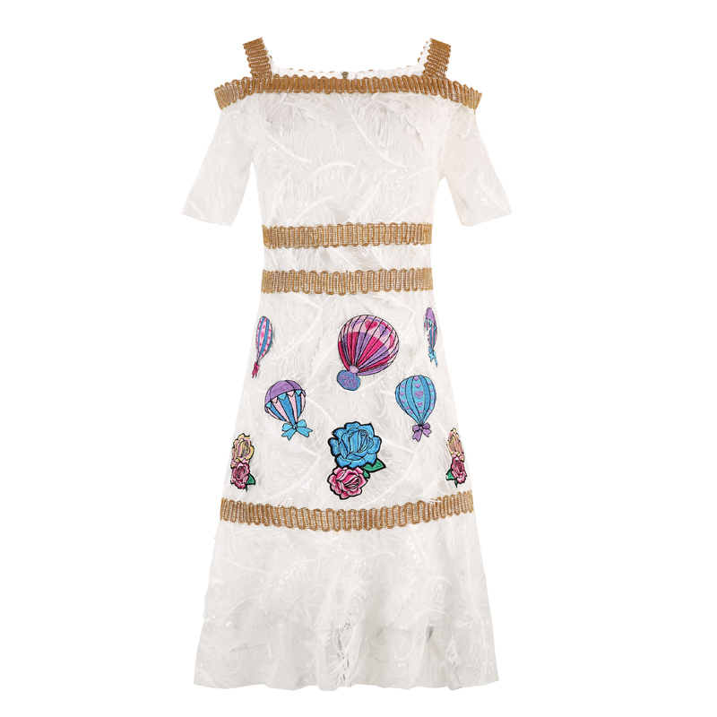 / 氣質名媛甜美女裝夏裝網紅款小個子2018新款高腰a字裙露肩連衣裙